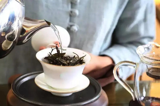 白茶在冲泡时,先将白瓷壶和茶杯分别用刚烧开的沸水烫洗干净,再用茶匙把8~10g白茶投入白瓷壶中,注入90~100℃的沸水冲泡,5秒后倒掉茶汤,继续往白瓷壶中注入沸水,盖上壶盖焖泡,5分钟后提起白瓷壶,倒出茶汤品饮即可。