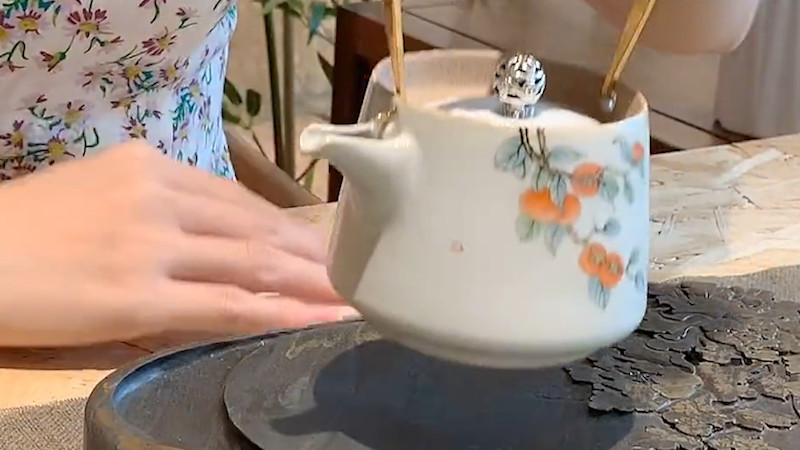 继续往瓷壶中注入沸水,并盖上壶盖焖泡,5~10分钟后提起瓷壶,将茶汤缓缓倒入瓷杯中,端起瓷杯细细品饮白牡丹馥郁浓醇的滋味,感受白牡丹的茶韵。