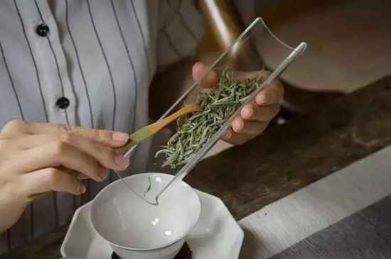 将茶叶放在茶荷里,用茶匙慢慢拨动3g左右的茶叶,茶叶和水的比例为1:30,加水冲泡后倒掉茶汤,可连续洗茶2~3次,再重新注水后焖泡5分钟左右,水温保持在90度左右。