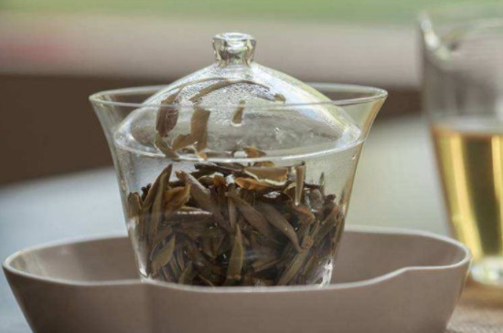 冲泡白茶可以选择透明的玻璃杯或者白瓷盖碗,先用温水洗杯,起到温杯、洁净与消毒的作用。如果用玻璃杯冲泡,茶水比为1:50,1g茶搭配50ml水。如果用盖碗冲泡,可以选择120左右容量配5g茶叶。