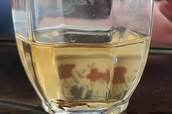 随后将投茶量占紫砂壶2/3的老白茶用茶匙投入紫砂壶中,注入沸水,5秒后将茶汤倒掉,之后再洗1~2遍茶,唤醒老白茶的香气和滋味,同时也是为了将老白茶里的杂质去除干净。