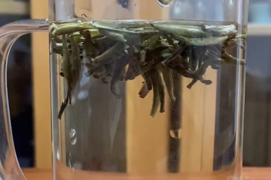 白毫银针在冲泡时,先将玻璃杯用沸水烫洗干净,再将4~6g白毫银针投入玻璃杯中,注入90~100℃的沸水冲泡,并在5秒后倒掉茶汤,继续冲泡,耐心等候5分钟的时间即可饮用。