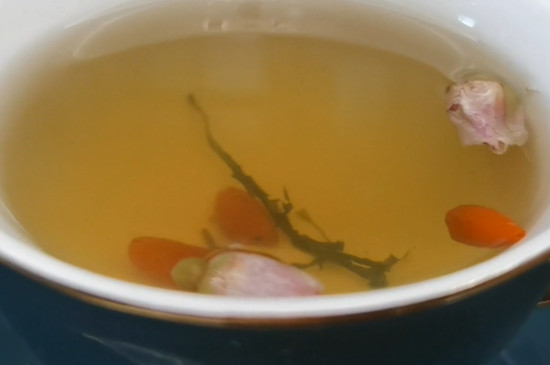 蒲公英茶可以搭配金银花茶,将玻璃杯用沸水烫洗干净后,把4g蒲公英茶和3g金银花茶投入玻璃杯中,注入85~90℃的沸水,耐心等候3分钟即可品饮。