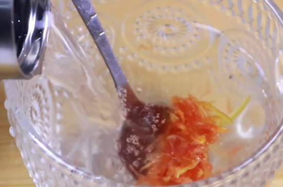 最后将熬煮好的柚子茶装入容器中,放凉置温热时加入适量蜂蜜,将蜂蜜和柚子茶拌匀,等人们想喝柚子茶的时取出一勺放入玻璃杯中,倒入80~90℃的开水搅拌均匀即可。