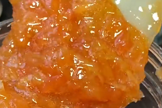 柚子皮制作时,用削皮刀把柚子表面黄色的皮给削下来,去除白瓤,切成细丝,放入温盐水中浸泡6~8小时,并将柚子肉剥碎,置于冰箱中备用。柚子皮泡好后用盐水焯10分钟,之后换水煮,柚子肉和适量冰糖,等茶汁煮至粘稠后,添加蜂蜜拌匀。