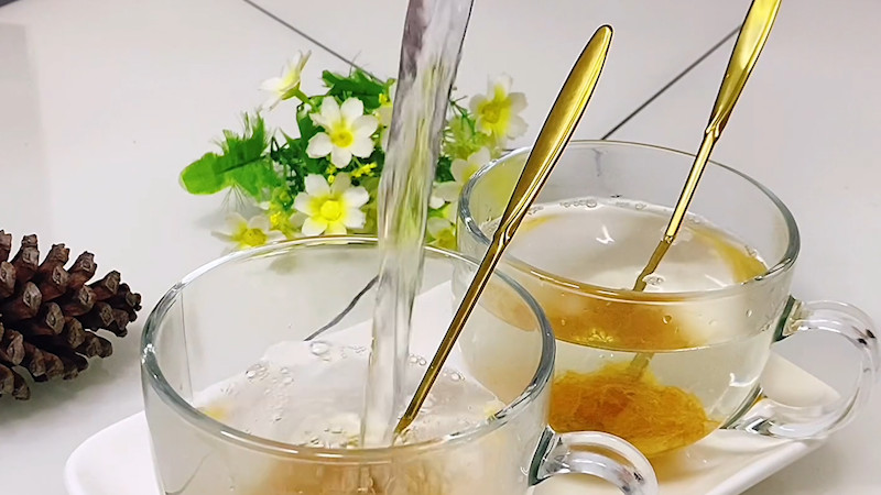 蜂蜜柚子茶需用温水冲泡,将冲泡温度控制在50~60℃,温度过高会导致茶中的苦味成分被释放出来,破坏其中的营养成分,失去品饮价值。冲泡时,只需将1勺蜂蜜柚子茶投入干净的玻璃杯中,冲入50~60℃的温水搅拌均匀即可。