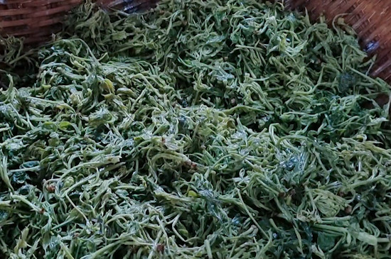 张家界莓茶属于再加工茶,是采摘以张家界为核心区域生长的小叶种显齿蛇葡萄植物制成。之所以叫莓茶,是因为其在制作过程中,细胞破损,里面所含有的黄酮活性成分渗透在其表面,形成了一层“白霜”,看起来如同发霉了一样得名。