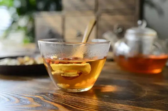 姜枣茶制作时先将红枣用清水洗净,去核切片,再将生姜用清水洗净,去皮切片,之后把鲜紫苏叶切丝,与红枣片和姜片一并投入清水锅里煮沸,接着改用文火炖30分钟,随后捞出紫苏叶和姜片,继续用文火煮红枣,15分钟后关火饮用。