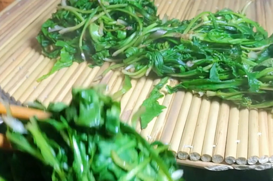 随后把已经清洗干净的蒲公英均匀摊放在竹匾上,置于微弱的阳光下晾干水分。接着把晒好的蒲公英放入蒸笼里,并在铁锅里加入清水,将装有蒲公英的蒸笼放进去开大火蒸。