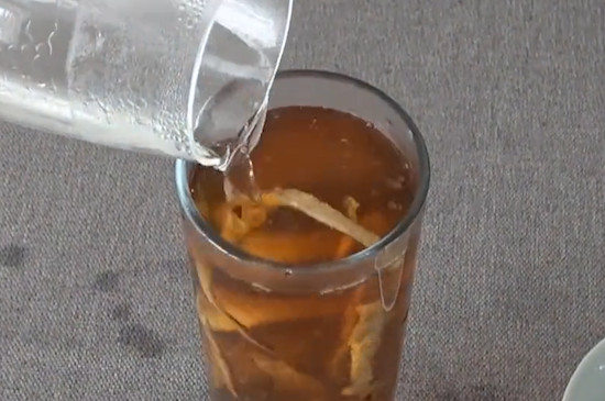 陈皮在泡水时可以兑茶,先将茶杯用沸水烫洗干净,再将3~5g陈皮2~3g普洱茶一并投入玻璃杯中,注入沸水冲泡,加盖焖泡10~15分钟后饮用。