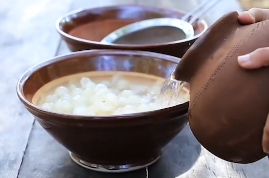 接着把红茶包投入玻璃杯中,再倒入榨好的龙眼汁,注入90~100℃的沸水搅拌均匀,5分钟后取出红茶包,即可饮用马来西亚龙眼茶的滋味,可添加少许果糖调饮。