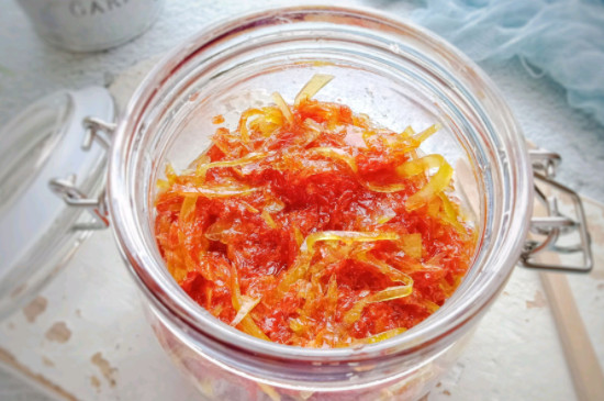 如果没有榨汁机,准备新鲜柚子一个,清洗干净后,撒上食用盐,搓去表面的果蜡与农药。然后用刀切开,取出果肉,掰成小块,去除干净有些苦的白色部位,果皮则切成细丝,放一旁备用。接着往锅中加入清水370ml,放入西柚皮,加入15g冰糖,小火熬制。