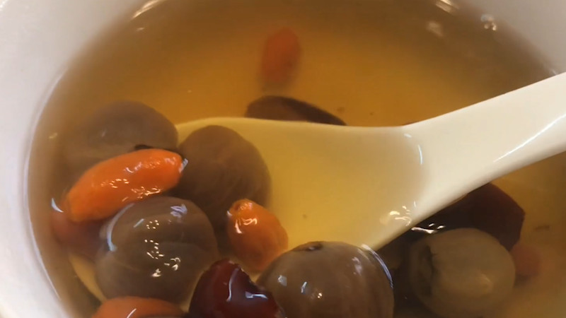 桂圆茶,将干桂圆泡发后和生姜一起冲泡;橄榄养生茶,将滇橄榄和绞股蓝煮沸后投入杭菊花;金银甘草茶,将金银花、金石斛、甘草洗净后用中火煮沸;高丽参茶,将高丽参茶切片后晒干,再用沸水冲泡。