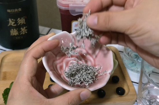 莓茶性寒凉,生长于武陵山脉,是以张家界为核心区域生长的小叶种显齿蛇葡萄植物。莓茶之所以叫莓茶,是因为其表面的白霜看起来像是发霉了一般得名。冲泡莓茶时,先将2g莓茶投入保温杯中,倒入200~300ml的沸水冲泡,10分钟后即可饮用。