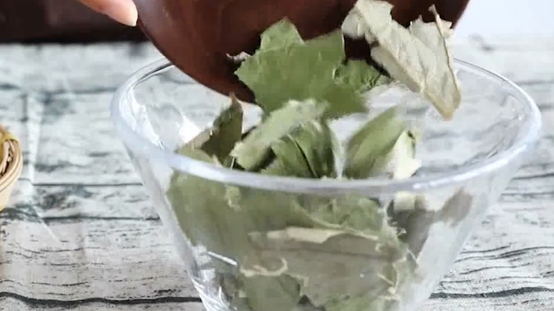 之后将已经洗干净的荷叶放入锅中轻微蒸一下,让荷叶茶的滋味更好,色泽更绿。接着将蒸好的荷叶摊放在空旷之处晒干,以免荷叶受潮发霉,晒干后的荷叶茶就能正常冲泡饮用了。