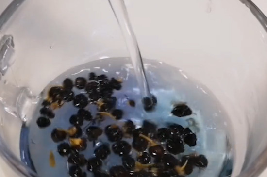 泡黑枸杞建议用50~70℃的水,若是黑枸杞的冲泡温度过高,就会破坏其中的营养成分,冲泡温度过低,会导致黑枸杞无法发挥自身功效。冲泡黑枸杞时,先将玻璃杯用沸水烫洗干净,再将洗净后的15~20颗黑枸杞投入玻璃杯中,注入50~70℃的开水冲泡。