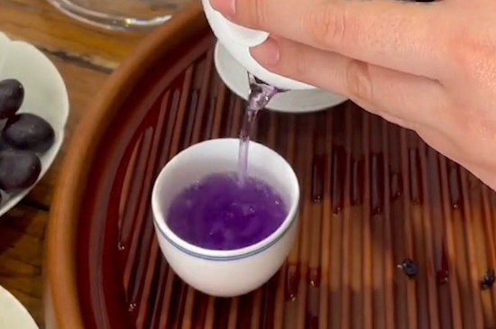 在冲泡黑枸杞时,先将玻璃杯用刚烧开的沸水烫洗干净,再将15~20颗黑枸杞用清水洗掉上面的浮尘,之后把已经洗净的黑枸杞投入玻璃杯中,注入50~70℃的开水冲泡,等到茶汤色泽完全变成紫红色之后就可以品饮了。