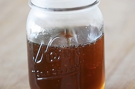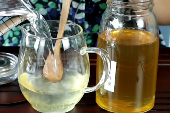 蜂蜜在冲泡时,先将玻璃杯用沸水烫洗干净,再往玻璃杯中倒入50~60℃的开水,之后用茶匙把2~3匙蜂蜜投入玻璃杯中,再将蜂蜜水搅拌均匀,最后就可以直接饮用了。