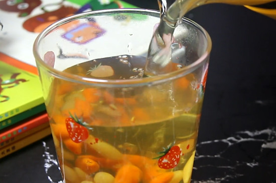 之后可往杯中注入沸水进行冲泡,时间控制在10秒左右。如果觉得麦冬的味道过于单调,在冲泡的过程中,可加入百合、玉竹、枸杞子等食材来提升整体的口感。