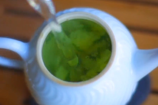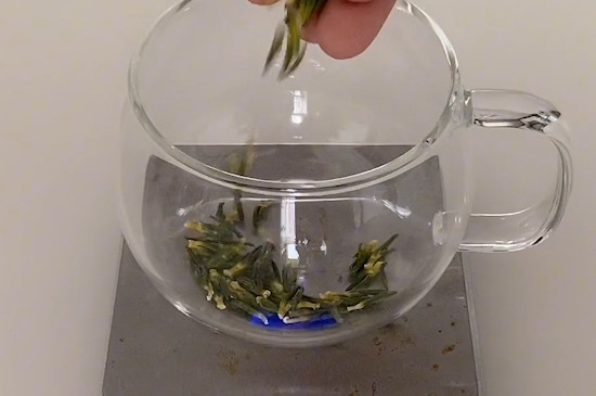 莲子心在泡水时,先将玻璃杯用沸水烫洗干净,再将8~10颗莲子心用茶匙投入玻璃杯中,注入刚烧开的沸水冲泡,并用茶匙快速搅拌茶汤,3秒后倒掉茶汤,继续往玻璃杯中注入沸水,盖上杯盖焖泡5分钟左右的时间即可。