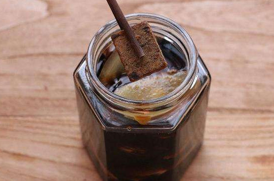 耐心等候10分钟后,将铁锅里倒入适量清水,把装有老姜的容器放入铁锅里隔水蒸30分钟左右的时间,最后将蒸好的老姜放冷,并装入密封的玻璃瓶中放在冰箱里保存,在饮用时只需挖1勺投入玻璃杯中倒入沸水冲泡即可。