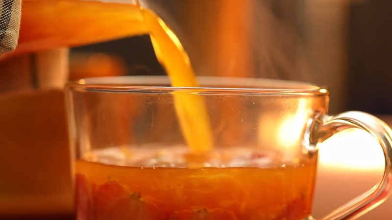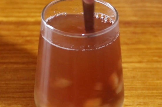 草莓蜜茶在制作时,将4颗草莓洗净去蒂切块,3颗金桔洗净去籽切块,1颗柠檬洗净后切3片下来,半个苹果去皮去核切块,最后将所有水果放入玻璃壶中,倒入85℃的开水焖10分钟,最后等到水温降下来后添加蜂蜜拌匀。
