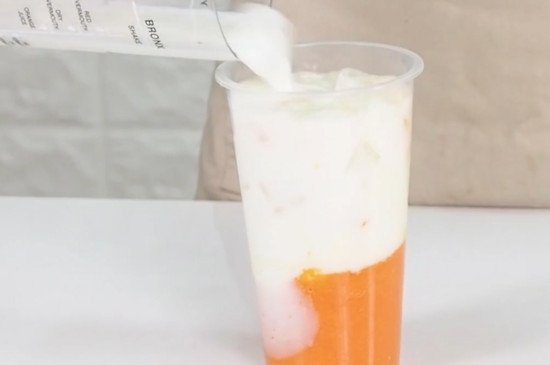 木瓜奶茶在制作时,先将1个苹果和雪梨洗净去皮并切块,再取半个木瓜洗净去皮切块,接着把所有水果放入破壁机中榨汁,最后将其倒入奶锅中,和牛奶一起煮沸。