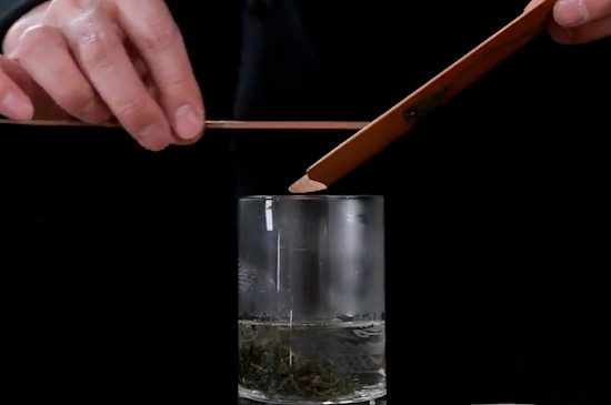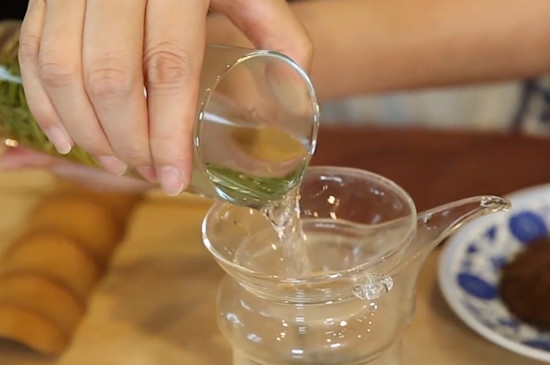 接着用茶匙将3~5g碧螺春投入玻璃杯中,冲入85~90℃的开水,用茶匙快速搅拌茶汤,并在3秒后将茶汤倒掉,之后继续往玻璃杯中冲入开水,耐心等候1分钟就能饮用了。