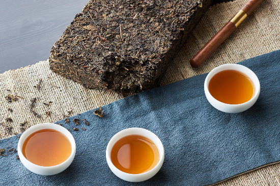 黑茶外形多为砖状,压制紧实,表面光滑油润,四周棱角分明,外层茶叶条索明显,冲泡后汤色浓厚,偏红褐色,茶香清淡,口感却十分浓郁厚重,经过发酵苦涩感淡化,转化为甘甜味。