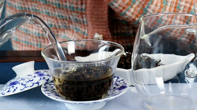 温杯,先将盖碗放入茶洗中,揭开碗盖,用刚烧开的沸水将盖碗烫洗干净;洗茶,把5~7g红茶用茶匙投入盖碗中,注入沸水冲泡,3~5秒后倒掉茶汤;泡茶,继续往盖碗中注入沸水,之后盖上碗盖焖泡红茶,5分钟后即可开盖品饮。