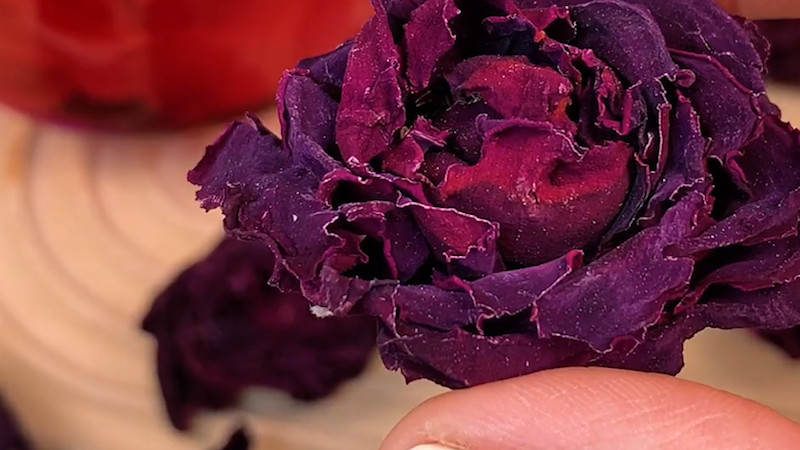 选择花茶或果茶需看质感,品质好的花茶和果茶干燥感较强,用手一捏就能轻易被捏碎。品质差的花茶和果茶所含水分较多,不易被捏碎。