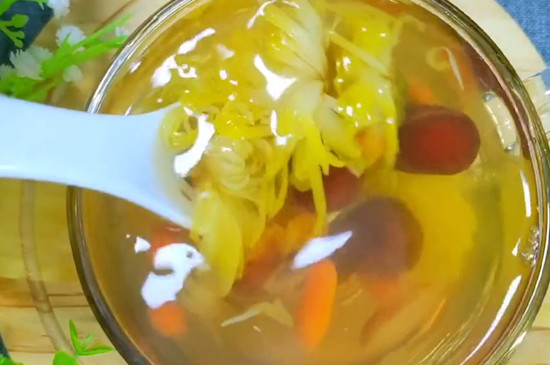 菊花茶虽然好处多多,但每天不可饮用过量,一般一天一杯即可。菊花茶性寒凉,为了中和茶性,可以适当加入玫瑰花、桂圆、红枣等食材一起冲泡,最后加入蜂蜜、冰糖进行调味。