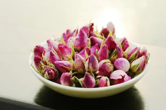 将玫瑰花干燥后便可冲饮,干燥时将玫瑰花花朵朝下,悬挂在通风良好的室内,让水中自然蒸发干燥即可,还可以通过微波炉将其烘干,更加便捷快速,花香也更加浓郁,但需要现烘现泡。