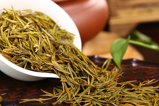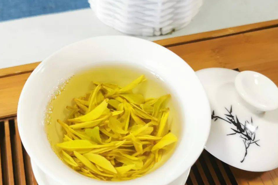 黄金芽的叶片颜色随着气温的变化而变化,茶叶的最大特别是,冲泡之后汤色明亮,制作完成的茶叶亮黄,叶片呈现纯黄色。其汤色清澈嫩黄,香气高远,入口茶香鲜美满盈,是目前中国绿茶中的极品。黄金芽是由于光合作用合成胡萝卜素的增多而叶面发黄。