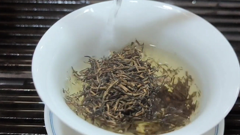 挑选金骏眉需闻茶香,品质好的金骏眉冲泡后,会散发出一股茶香和花果香混合的清甜香气,或持久的蜜糖香气。品质差的金骏眉冲泡后,则会产生焦糖香气,闻起来比较污浊。