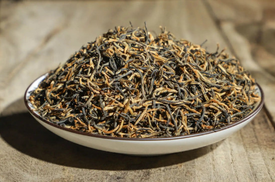 金骏眉干茶外形细小紧秀,外观色泽金、黄、黑三色相间,整体圆而挺直,冲泡后汤色金黄,静置片刻后茶汤表面有金圈显现,浓郁的花果香沁人心脾,口感饱满甘甜,滋味浓醇觉爽。
