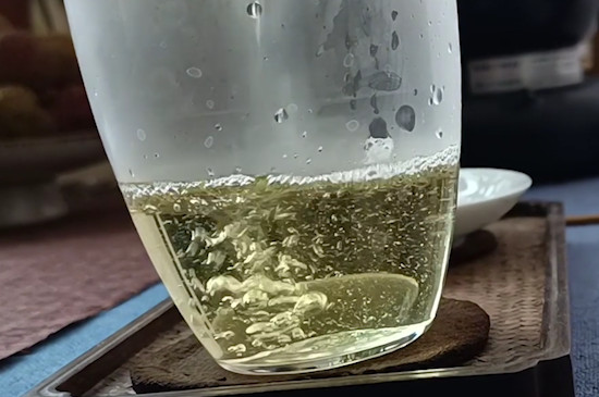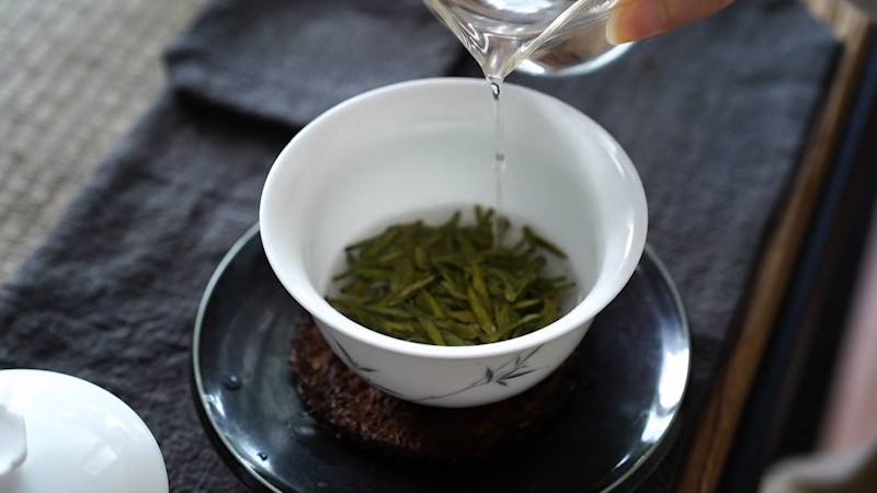 随后用茶匙把3~5g龙井茶投入玻璃杯中,注入80~85℃的开水冲泡,并用茶匙快速搅拌茶汤,3秒后倒掉茶汤,继续注入开水,耐心等候1分钟后就可以端起玻璃杯品饮了。