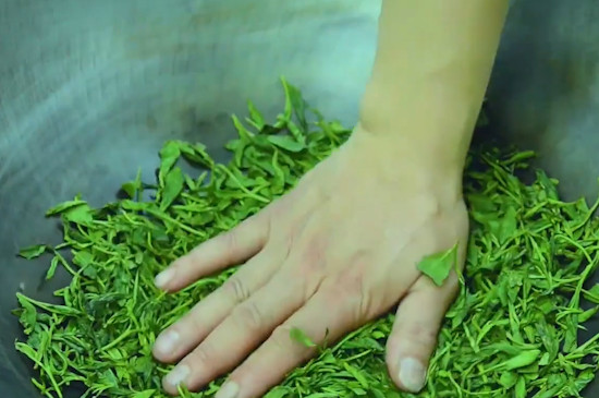 西湖龙井是采摘明前的鲜嫩芽叶,经过摊放、杀青、回潮、辉锅、分筛、挺长头、归堆、收灰等工序,运用了“抖、带、挤、甩、挺、拓、扣、抓、压、磨”十大手法精制而成。