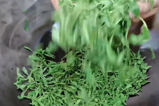 狮峰山龙井茶是采摘明前嫩芽,经摊放、杀青、回潮、辉锅、分筛、挺长头、归堆、收灰等工序,运用“抖、搭、拓、甩、推、抓、扣、捺、磨、压”等手法炒制而成。