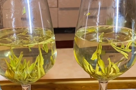 龙井茶冲泡后要求叶底芽叶细嫩成朵、茶形匀齐、色泽嫩绿明亮,若是冲泡质地上乘的龙井茶,冲泡后旗枪沉浮、交相辉映、芽芽直立、栩栩如生。