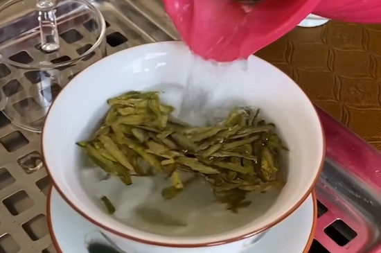 西湖龙井属于鲜嫩绿茶,适合用80-85度的水温冲泡,先准备一个玻璃杯,用开水温杯后将水倒出,接着投放龙井干茶,然后倒五分之一开水浸润,摇香30秒左右后,再用悬壶高冲法注入热水,35秒之后即可饮用。