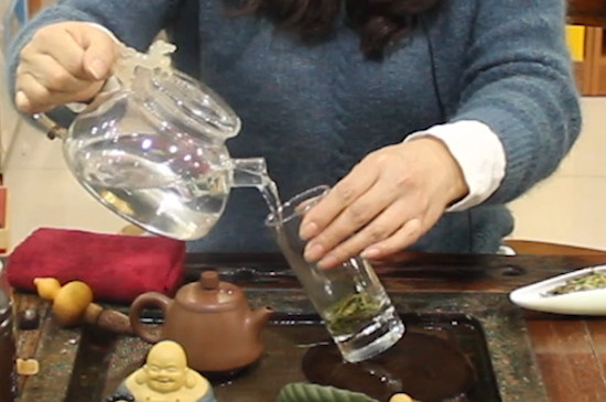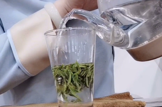 虽然龙井茶质地细嫩,可不用进行洗茶,但为了保证茶汤的纯净,投茶之后,可往杯中倒入少量的温水,浸润3-5秒后倒掉。