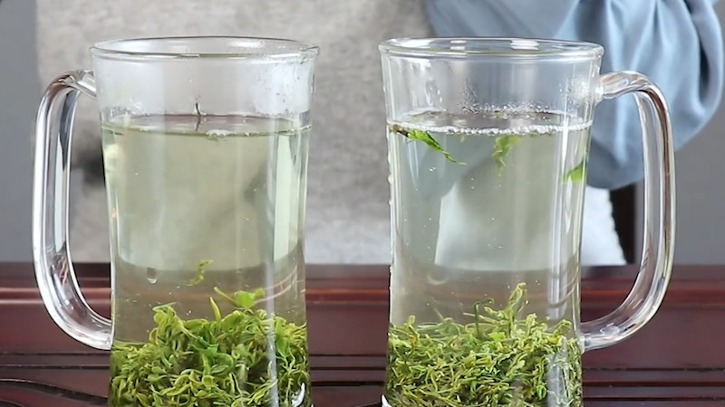 浓烈型绿茶冲泡后香气主要分为清香和熟板栗香两种,香气清香的茶汤会显得比较浓郁,内含物丰富。香气呈熟板栗香的茶汤则会看起来清澈一些,滋味浓而不苦。