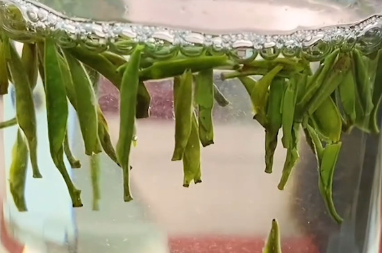 浓厚型绿茶由于原料嫩度高的原因,拥有似喝汤舌面挂有茶汤的特征,叶片厚实,把茶汤含入口中后有较强的刺激性和收敛性,滋味浓醇,回味甘爽。