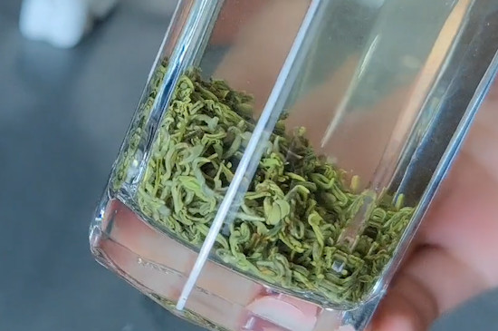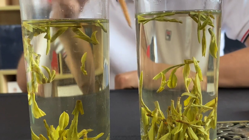 双龙银针产于浙江省金华市,具有条索紧直、形似银针、色泽翠绿、白毫显露的特点,冲泡后汤色黄绿清流、叶底嫩匀硕壮、香气鲜爽持久、滋味醇厚甘鲜。