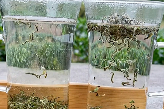 蒙顶茶在冲泡时,先将玻璃杯用沸水烫洗干净,再用茶匙把3~5g蒙顶茶投入玻璃杯中,注入80~85℃的开水冲泡,3秒后倒掉茶汤,继续注入开水,耐心等候1分钟后即可品饮。