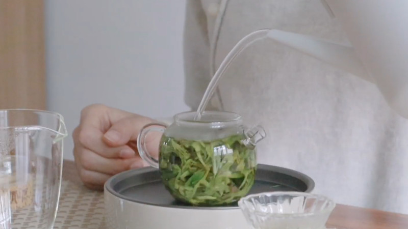 绿茶冲泡时,先将玻璃杯用沸水烫洗干净,再用茶匙往玻璃杯中投入3~5g绿茶,并注入80~85℃的开水冲泡,1~2分钟的时间即可品饮,也可以将泡好的绿茶放入冰箱中冷藏。