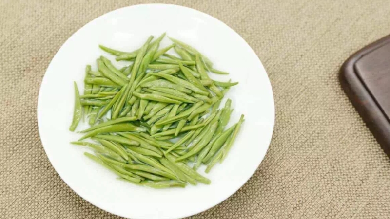 金坛雀舌产自江苏省金坛市,是江苏省新创制的名茶,因外形似雀舌而得名,属于扁形炒青绿茶的一种,外形扁平,色泽绿润,冲泡后汤色亮堂,滋味鲜爽,香气中带有栗香。