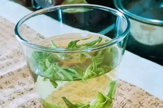 成品茶的条索挺直,形状自然,白毫显露,色泽翠绿,冲泡后汤色碧绿清澈,香气清高,滋味鲜醇爽口,富含茶碱、咖啡因、儿茶素等成分,具有抗氧化、去油腻及抗菌等作用。