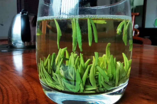 采摘的茶叶经过摊放、杀青、揉捻、理条、烘干、筛选制作完成。覃塘毛尖干茶外形纤细、条索紧结、白毫显露、冲泡后茶汤黄嫩透亮、香气持久清高。